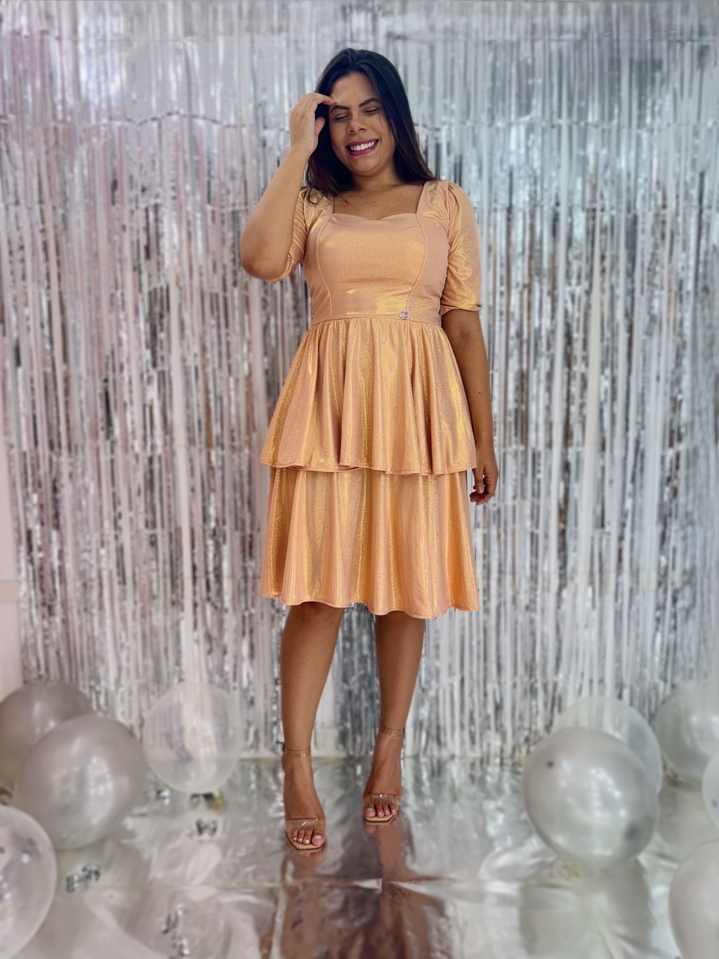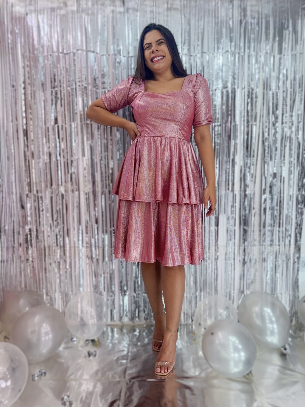 O Vestido Laura é a peça ideal para brilhar em qualquer ocasião. Confeccionado em tecido malha holográfica, esse vestido possui uma modelagem sofisticada com dois babados que valorizam a silhueta e garantem um toque de charme. Versátil e elegante, ele transita facilmente entre eventos diurnos e noturnos.