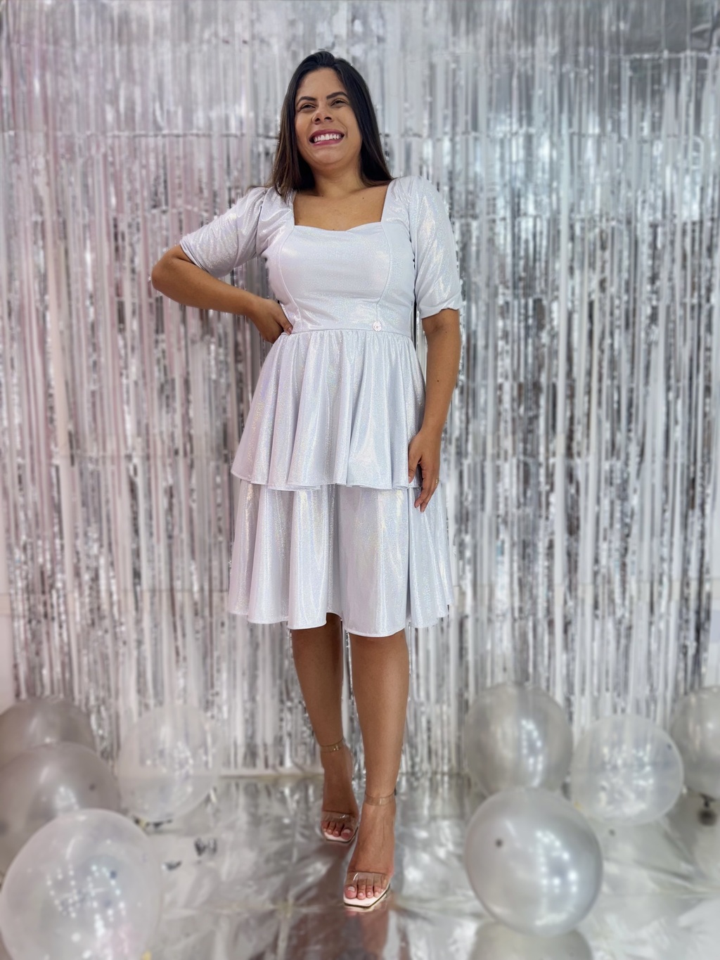 Vestido Laura em Tecido Malha Holográfica
